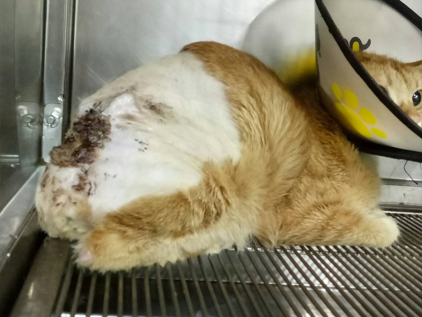 今天術前幫她做了血檢,確認她是愛滋貓,白血球因為受傷的關係較高,其他數據尚好,所以先進行清創手術,但因為她受傷的面積大,表皮少,非常難修補,需做2次修補手術,加上愛滋的關係,需要長一點的時間才能癒合,因此請求協會支援,讓星星能好好的養傷。動物近況說明: 星星分別在106年12月25日和107年1月9日進行縫合手術治療,之前擔心因為她是愛滋貓會造成傷口癒合緩慢,不過目前看來還好,傷口也正常癒合中,醫助部分是申請住院到107年1月24日,我已經和醫院協調好自費續住,確定讓她傷口癒合後再帶回通報的大姊家放養。