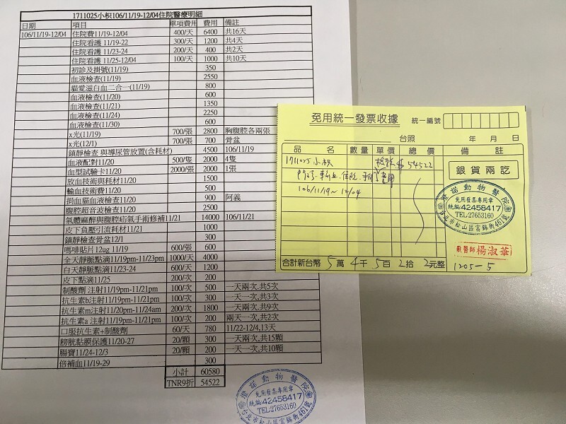 小枳受傷的情況很嚴重,需要緊急、完善的醫療,龐大的醫療費用不是我個人所能負擔,因此我向TNR計畫協會求助,協會很費心地挑選了適當的醫院,緊急將小枳送醫急救,醫院幫小枳做了完整的檢驗,檢驗結果小枳的骨盆斷裂,腹部因為受到強烈撞擊導致肌肉撕裂、腸子掉落腹腔,必須先動疝氣修補手術保命,先把命保住後再評估如何進行第二階段的復健手術,小枳已經做了疝氣修補手術,術後恢復情況很好,我先提出第一階段的疝氣修補手術及住院醫療費用,請大家慷慨解囊,幫幫忙。