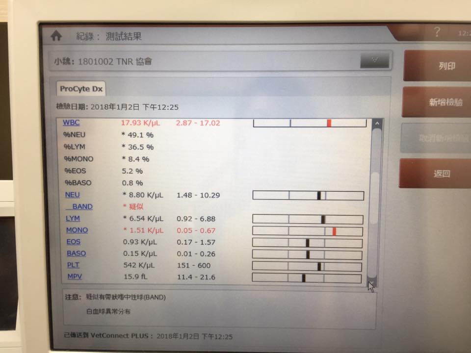 有抽血檢查,鼻塞、淋巴結腫大、眼瞼也紅腫,醫師擔心是披衣菌感染,要單獨隔離關籠不要與其他貓接觸;食物請給小魏香一點引誘她有食慾多吃