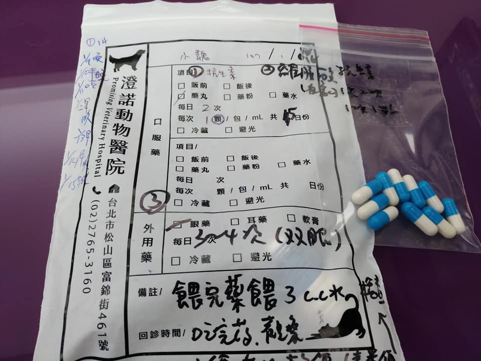 一月初,發現小魏鼻塞,眼睛紅腫,無食慾而帶往就診