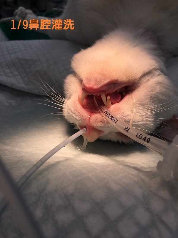 隨著鼻膿淚眼問題逐漸嚴重,於1/9再度進行鼻腔灌洗