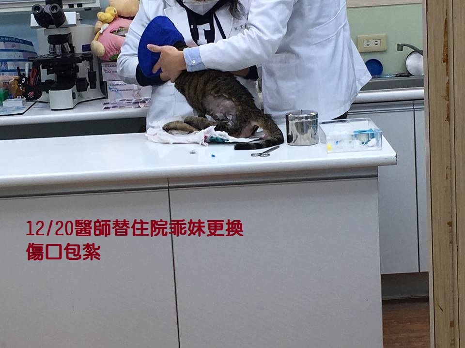 由於乖妹先天畸形,病情複雜,在分別帶往極光動物醫院判斷病情並尋求亞太動物醫院醫師意見後,於12/9前往沐恩動物醫院就診