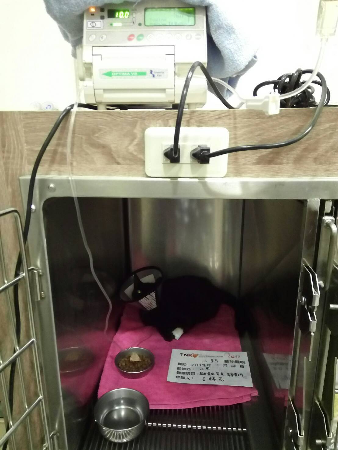 可能是小黑一直很害怕,小黑在外面流浪很久了(依愛媽的記憶超過十年以上囉),一直過著自由自在.到處趴趴走的生活。突然發生意外,身體上的疼痛加上被關在籠內,造成小黑在醫院裡一直超兇的,也對醫師助理們有很大的戒心,治療時弄得大家都人仰馬翻。