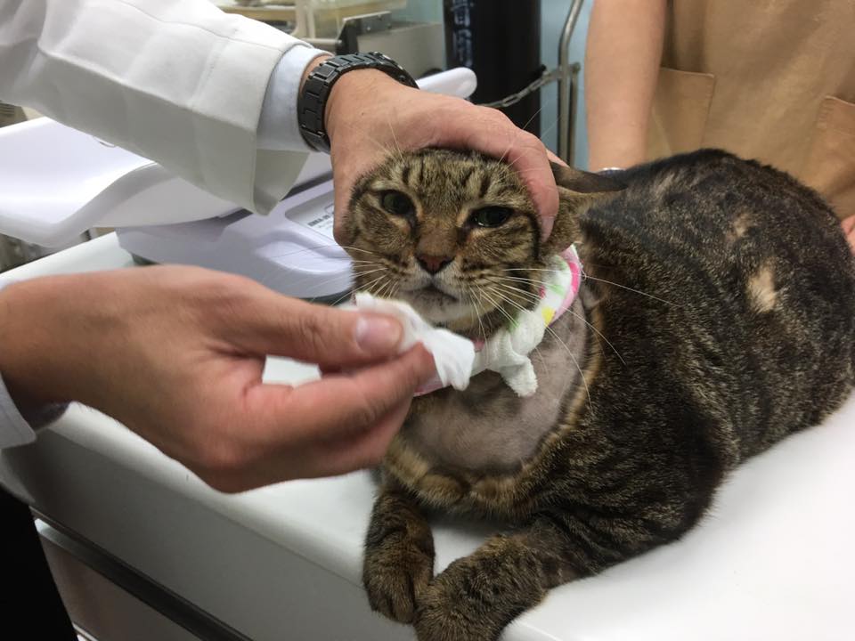 星期六有照顧員發現,callme食道餵管的傷口,流一些組織液及腫起來。