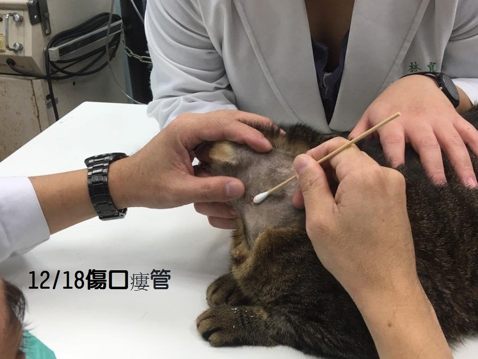十二月份因當初裝設食道餵管的傷口產生瘻管而住院處理