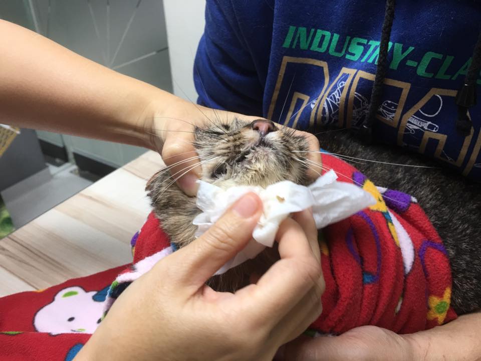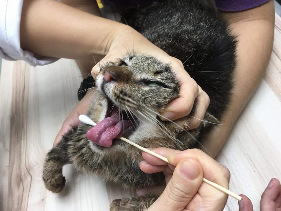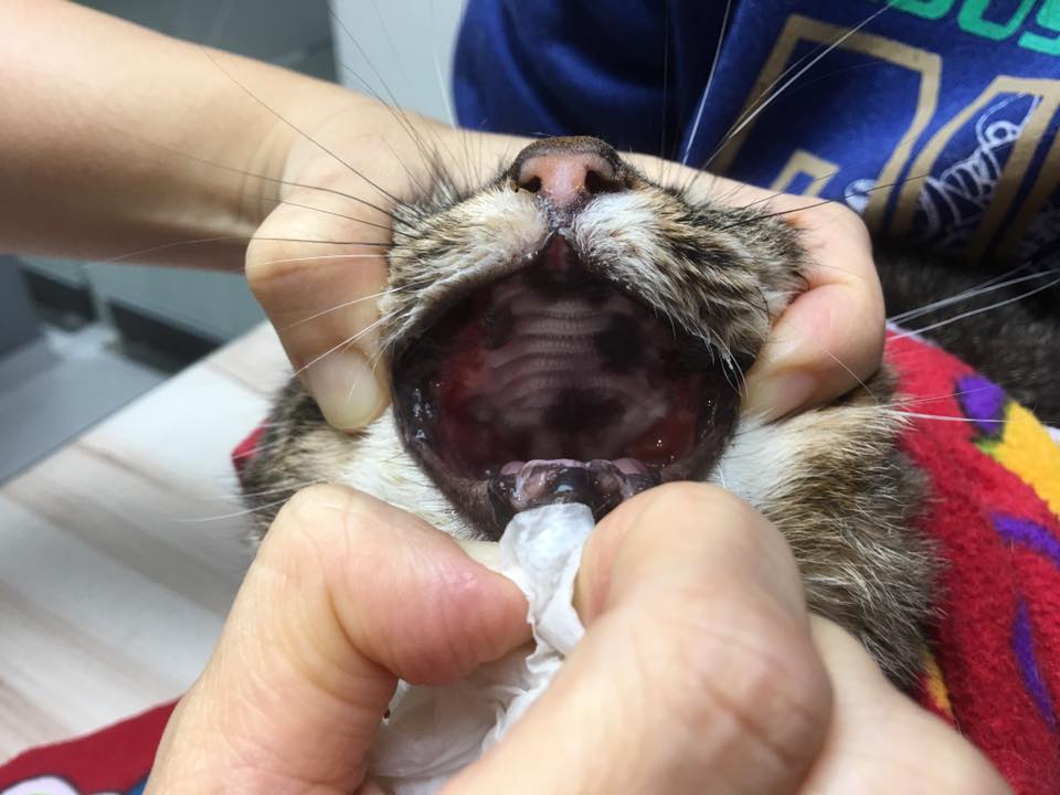 安置照護後盈盈的肝指數及貧血狀況逐漸改善,但口炎狀況經過持續治療後仍未見太大進步,甚至有舌炎的狀況,由於舌潰爛