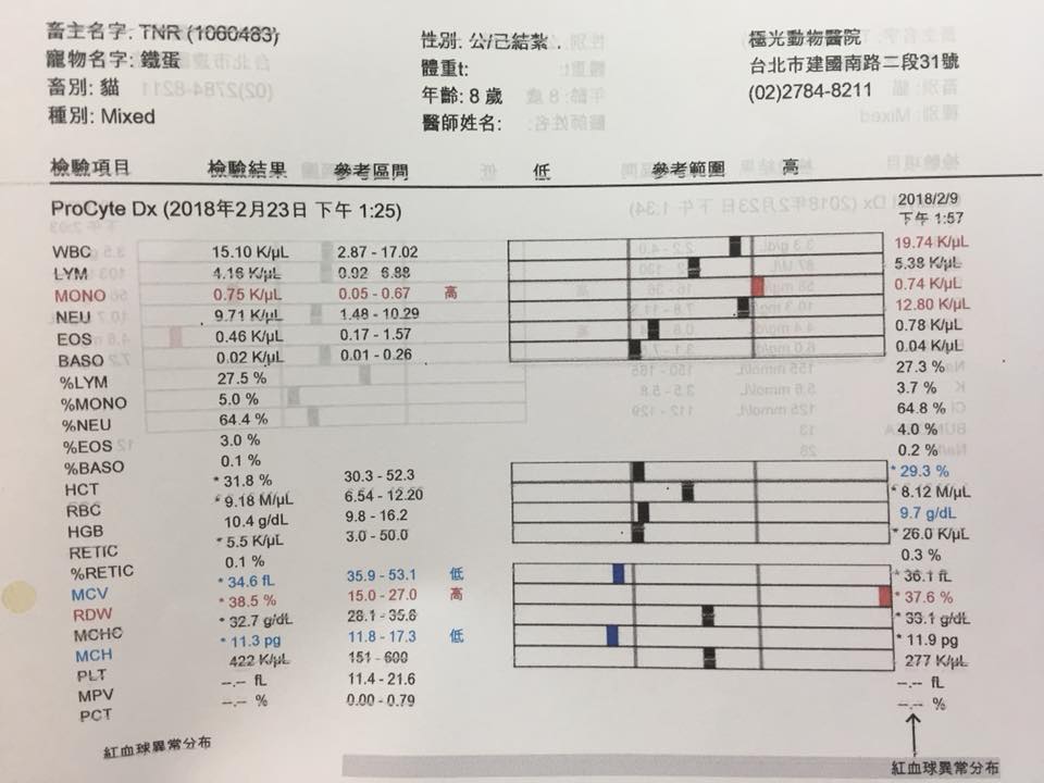 有時甚至會出現血便的狀況,今年度一月份,鐵蛋因連續嘔吐,食慾精神不佳,大便疑似帶血而回診並住院,出院後狀況暫時維持穩定,並且經醫師決定,可將鐵蛋回診期間拉長至一個月