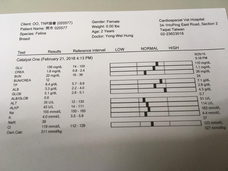 血檢部分,血紅素稍高,喝水量不足,希望可再加強喝水
