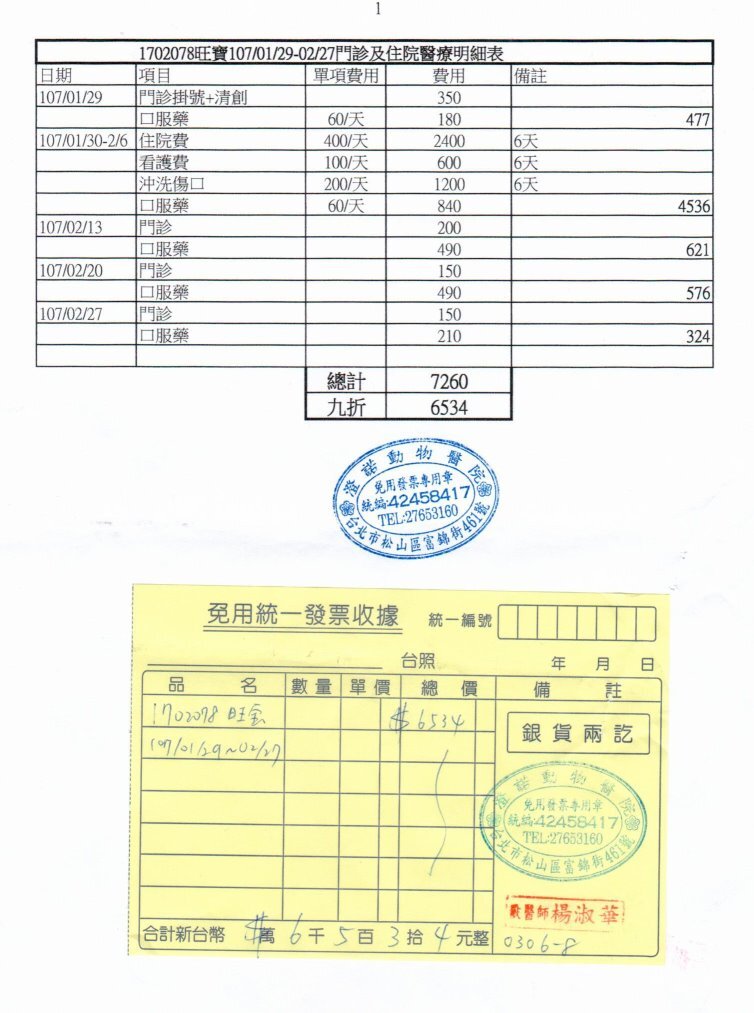 主題: 肛門腺裂開發炎 申請者姓名: 臺北市支持流浪貓絕育計劃協會 花色: 申請日期: 2018-03-22 22:45:14 申請者部落格: 申請者臉書網址: 所在縣市/合作醫院: 台北市/澄諾動物醫院 治療費用: 6534元 需求人數: 15人 已結案 (2024-06-01 13:14:33) 報名人員: Naommi(已付款)、薇薇安(已付款)、若芯、千娌(已付款)、Krystal(已付款)、Chacha&Vivi x2(已付款)、小金媽媽(已付款)、Wan Lu(已付款)、mint(已付款)、amanda x6、yoie(已付款)、肥灰(已付款)、Joan(已付款)、大鼻 x3(已付款)、 候補人員: 動物病情說明: 旺寶在2012年時被居民通報後抓到內湖收容所,