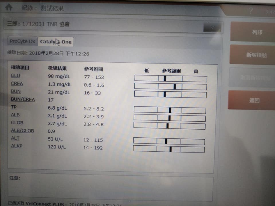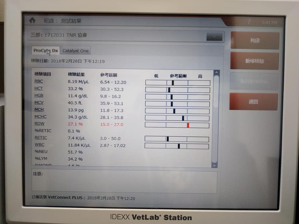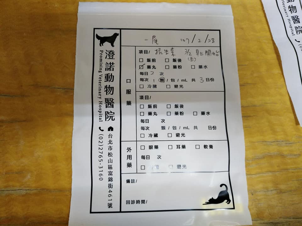 一二三雖然抗拒頭套,但還是要戴,先戴5天,自行看傷口狀況,如傷口有被舔開,下週二需要回診。
