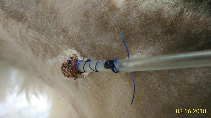 3/16 安裝食道胃管兩週後, 回診檢查餵管傷口與血檢.