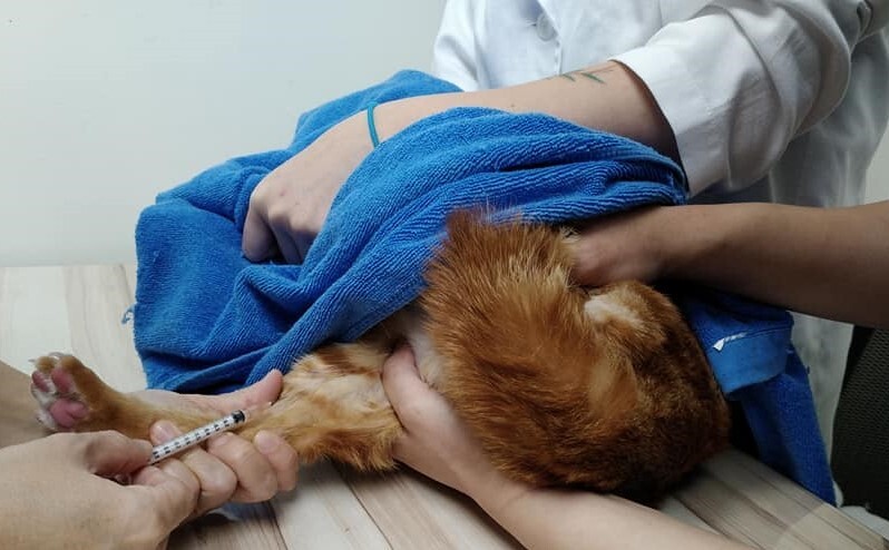 文狸有變瘦,口炎狀況還是紅紅的,口炎的範圍有縮小一點,免疫抑制劑的計量為0.2ml。