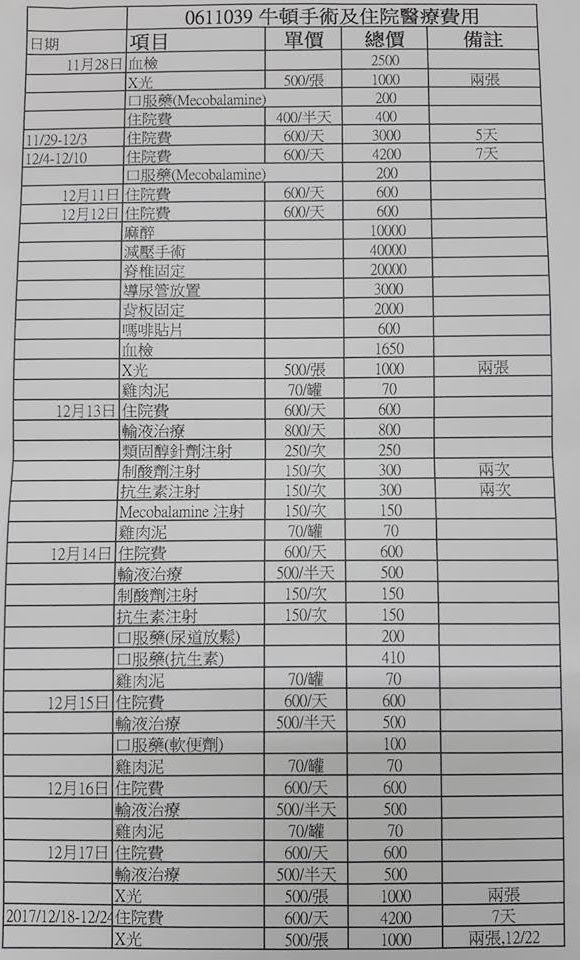 主題: 因墜樓重傷進行手術的牛頓 申請者姓名: 臺北市支持流浪貓絕育計劃協會 花色: 申請日期: 2018-04-10 17:33:48 申請者部落格: 申請者臉書網址: http://admin.tnrtw.org/hospice_add.php 所在縣市/合作醫院: 台北市/沐恩動物醫院 治療費用: 133000元 需求人數: 137人 已結案 (2024-06-01 13:13:41) 報名人員: Claire Hsu(已付款)、Ppn Huang(已付款)、minibb(已付款)、Na Ho Zhu(已付款)、Coco Huang(已付款)、Jack Wei x3(已付款)、SANDY YANG(已付款)、曾嬿蓉(已付款)、朵朵、豆皮(已付款)、曾嬿蓉 x2(已付款)、Ago Walker(已付款)、Franky Chen(已付款)、Corey(已付款)、蔡Tina(已付款)、Derek(已付款)、林波、Ziyi Chiang(已付款)、李坤財(已付款)、小咪的壞壞(已付款)、Seven Li(已付款)、Po-Lin Chen x2(已付款)、mason(已付款)、張球(已付款)、薇薇安(已付款)、Zeke x5(已付款)、Mimi Liu(已付款)、wgs(已付款)、mmama(已付款)、Chien Yi Su(已付款)、show(已付款)、Ivy(已付款)、Mong x5(已付款)、典媽 x10(已付款)、李庭芝 x3(已付款)、小瓜(已付款)、徐雅嬪(已付款)、May x2(已付款)、Amirose Hsieh(已付款)、Eunice Li x2(已付款)、amberkuyin(已付款)、Ivis Zheng(已付款)、坑長 x2(已付款)、ying(已付款)、Solas Lin x3(已付款)、小橘子(已付款)、小橘子、LisaC x41(已付款)、鳥兔(已付款)、Mikan(已付款)、彭小燕(已付款)、Mia Jheng(已付款)、Guo-Guo(已付款)、Ailin Hsiang(已付款)、Ingham Kao(已付款)、麥克 x17(已付款)、 候補人員: 動物病情說明: 牛頓是附近愛媽,在協會隔街的巷子口,