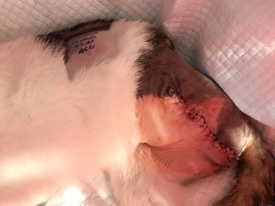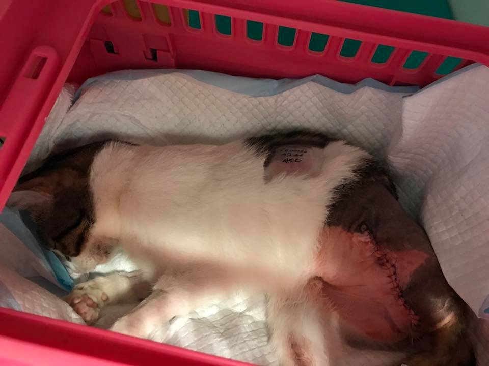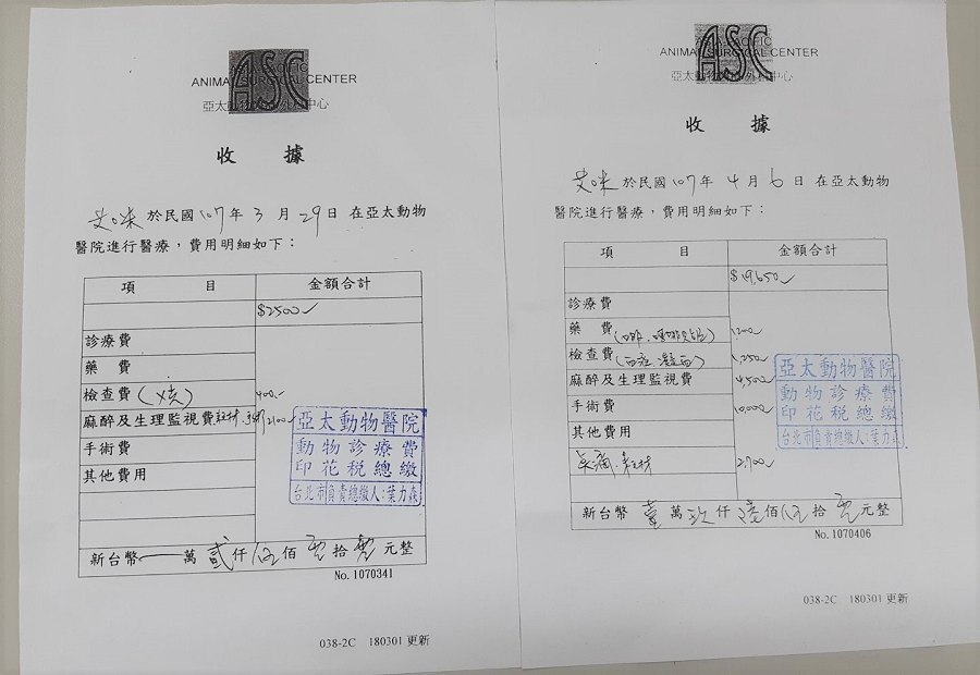 本貓3個月大時,因無法排便,在愛屋動過手術,長大後排便仍不順,多次在極光、愛屋、沐恩回診,最後決定由亞太葉醫師操刀,右側因與脊髓相連,無法處理,移除左側的骨盆腔骨頭,看是否能解決艾咪排便狀況。