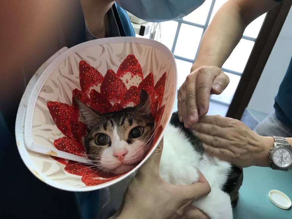 體重:2.8kg(上次4/06回診是2.9kg-少隻腿、戴頭罩也有影響)