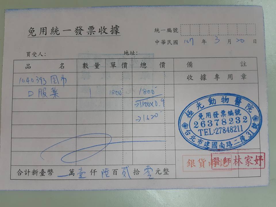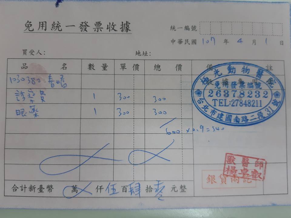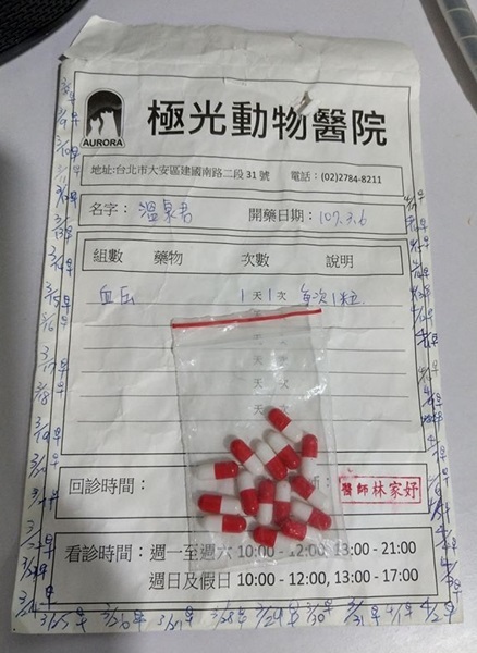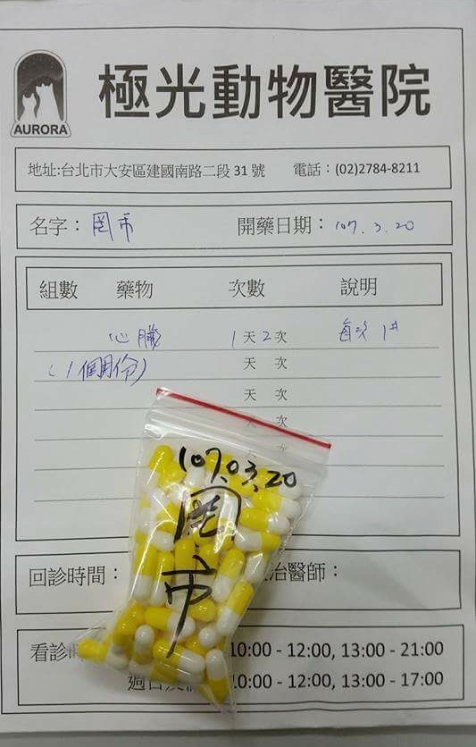 專心動物醫院定期回診,極光動物醫院定期領藥。