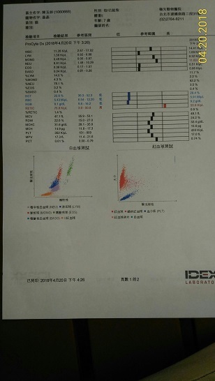 最近兩次看診的時候, 力氣很大掙扎, 雖然全口無牙, 卻很用力很生氣地咬人. 這是過去沒有的現象, 以前都是很溫和, 現在卻脾氣變大, 反應讓人不解吃驚. 現階段希望體重能維持住 3公斤, 改善貧血為要.