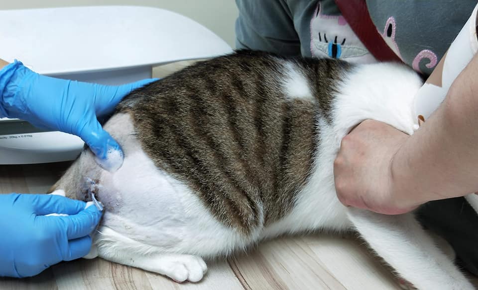 1.溫溫剃毛之後發現右後大腿根部靠近屁股的地方有血腫,且有被打洞的痕跡,醫師隨即決定麻醉引流。