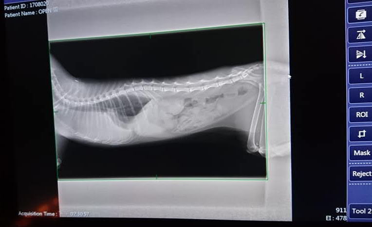 上回4.215kg 今日回診3.76kg瘦很多,發燒40℃有輕微脫水,暫時不打水怕打的水跑到胸肺去,牙齦很紅,後口部份沒有到紅腫,今日血檢白血球比較高,照X光後發現有胸水,需抽胸水檢驗,今日左胸抽出108ml 右胸抽出66ml 量很多,原本含氧值84∼85%抽完胸水到99%正常值,表示可以正常呼吸