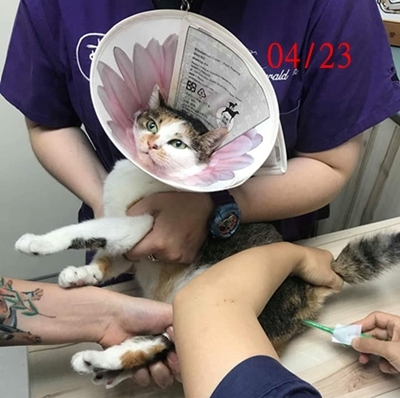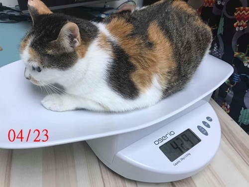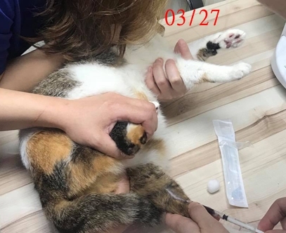 現在除了定期的回診血檢、超音波檢查,腎衰也需要長期每日服用降磷藥、肝藥、施打皮下注射,飲食上也遵照醫囑為牠準備適合的食物,在配合醫療及協會照護人員的細心照顧下,胖吉情況已漸趨穩定也長胖許多,但因為胖吉是愛滋帶原,加上先前身體受創太重,健康變數會較多,需持續配合醫生指示回診檢查、每日服用藥物,希望大家可以幫忙。