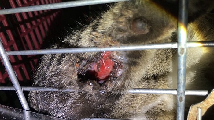 主題: 手肘下方受傷,走路掰咖,皮膚掀開4-5公分,肌肉外露,清創縫合的襪襪 申請者姓名: Fiona Chen 花色: 申請日期: 2018-06-01 11:37:10 申請者部落格: 申請者臉書網址: https://www.facebook.com/profile.php?id=100009826632869 所在縣市/合作醫院: 新北市/成蹊動物醫院 治療費用: 6350元 需求人數: 14人 已結案 (2024-06-01 13:11:49) 報名人員: 徐(已付款)、紅月 x2(已付款)、張嘉琪(已付款)、雲荻(已付款)、Zoey Yeh(已付款)、斑比(已付款)、Claire Huang(已付款)、何偉靖(已付款)、Ingham Kao(已付款)、洪凱威 x2(已付款)、平(已付款)、iamdavidga(已付款)、 候補人員: 動物病情說明: 襪襪是是很聰明的大公貓,平常不太準時報到吃飯,想吃好料才會來找我,但是自從受傷以後就每天準時來吃飯,還有意無意的站在高處,讓我看到他不容易被發現的傷口,傷口有點嚴重,皮膚與肌肉分離,靠傷口四周的皮跟肉連著,可以清楚看到肌肉的紋理,走路掰咖越來越嚴重,前幾次誘捕失敗,後來可能腳太痛了,就乖乖進誘捕籠了。 動物近況說明: 襪襪雖然是大公貓,但是個性很憨,每次去看他都呆呆的望著我,可以隔著籠子偷摸他不打人,受傷的那隻手永遠都捲起來不給別人看,在醫院好吃好睡的,不用帶頭套也不會去咬手上的縫線,恢復狀況良好。