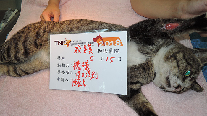 襪襪傷口已拆線,目前已經放回原地,已將移似害他受傷的物品清除,後續後會持續注意他的身體狀況,感謝協會伸出援手,也懇請大家幫忙這肥嘟嘟孩子的醫藥費用,感謝大家。