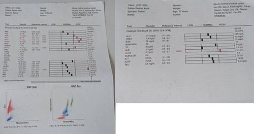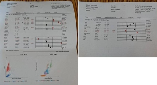 紅血球也有掉了一點,但還好 ,沒有太糟糕,鼻腔的膿,打針可能需要兩至三周,明日下午麻醉沖洗鼻腔,沖洗鼻腔對callme來說幫助較大。