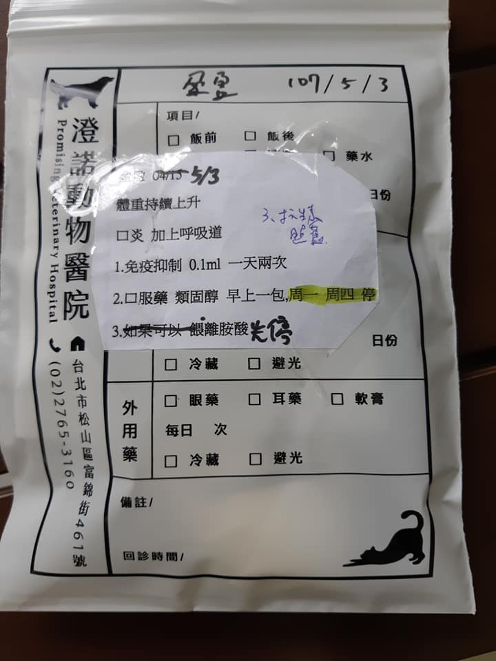 .類固醇:周一跟周四停用《早》一次,每次一包,混嬰兒泥。