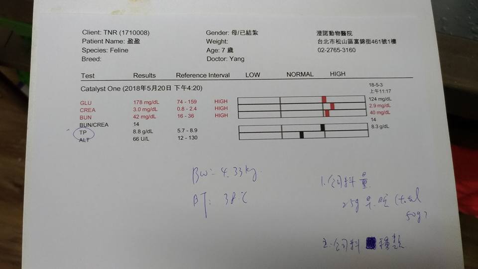 本次血檢主要驗血糖,超標但還不需要擔心,CREA & BUN緩慢增高,但也還算正常,但是體重一直增加需要控制。