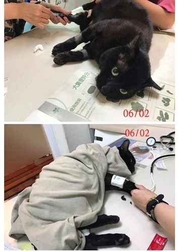 晚間照顧人員告知鐵蛋癱軟無力、狀況不佳,雖早先已更換藥劑,但情況仍無好轉,緊急就醫檢查,血檢腎指數無變差,但體重掉很多,只有5.2kg,到院體溫37度,渾身不停顫抖、心跳較快,鉀離子偏高。醫生有表示,若狀況不佳可隨時帶回觀察,懷疑可能是新開的止痛藥引發的副作用,會備註以後避免使用本藥,先留院注射靜脈點滴與觀察。