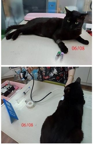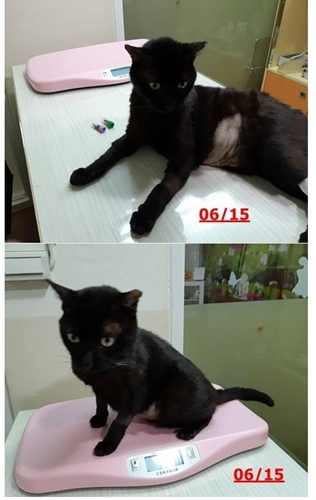 長久的流浪生活讓鐵蛋的身體狀況很不好,他有貧血、肝腎指數偏高,肝炎,腎功能不全,膽結石,協會持續為他就醫治療,但情況一直不夠穩定,除了定期的血檢、超音波觀察各項指數變化、監控腎臟膽囊情況,協會照護員每日為他打皮下注射、 餵吃降磷藥、腸寶、肝藥,隔幾日便需打造血針改善貧血狀況,在他食慾不佳時也需要灌食,希望可以讓他健康情況到達較穩定狀態。