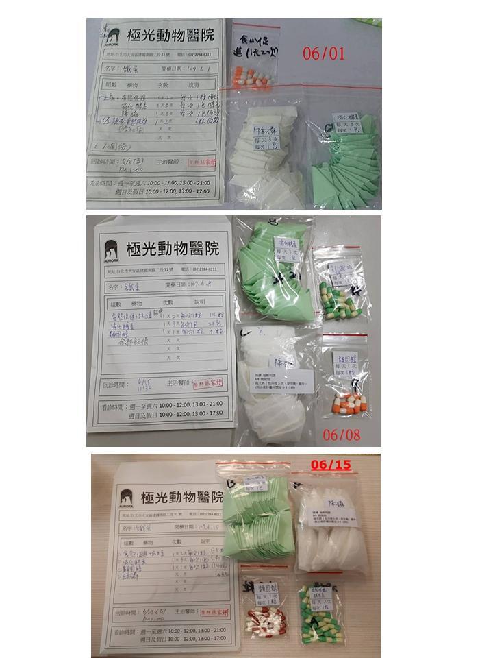 因磷指數上升,會給吃少量福斯利諾降磷藥,如果又有不好反應就再停掉;另外先前因肝指數已變好因而停掉的類固醇,這次會再給,因為鐵蛋先前吃類固醇很久,有可能身體對類固產生依賴性,停掉後就會不舒服沒食慾,因此這次嚐試再給類固醇,觀察看看鐵蛋的反應。