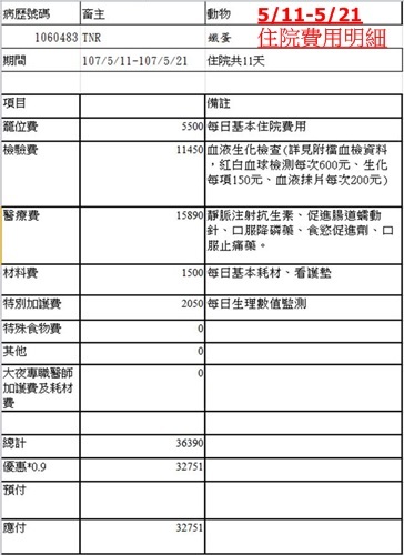 鐵蛋兩次住院、平時的藥物、治療、各項檢查的費用都不少,之後仍須定期回診追蹤情況,希望大家可以幫忙乖巧聰明的鐵蛋。