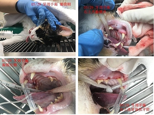 今年三月時照護人員發現她流口水看起來很不舒服,體重也有減輕,抗拒碰觸,帶她至醫院檢查,經驗血、照x光,診斷結果她的右上犬齒跟右上第三前臼齒的前齒根有發炎, 兩側上面第四前臼齒牙結石較嚴重,所以造成她口腔極度不舒服影響食慾精神,於是在5/29安排牙週手術,口腔患處進行洗牙拔牙,術後除了服藥也須再回診檢查恢復情況,醫療費用請大家幫忙。