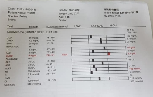 小甜甜的定期回診包含了量血壓,聽心音,心臟超音波,血檢。醫生表示小甜甜心音聽起來乾淨無雜音,在服藥控制下,各方面都維持得不錯,血檢數值也ok,因此定期回診由四個月改為六個月一次。