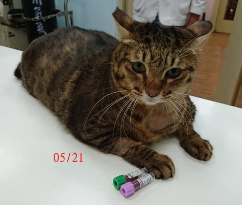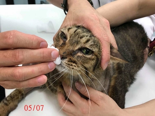 動物近況說明: 協會照護員依照醫師指示,每日為callme早晚氣霧治療,打抗生素針,callme的鼻膿已改善很多,鼻子通了,callme也開心多了,每天都要討摸摸,要人拍她的屁股, 非常可愛。