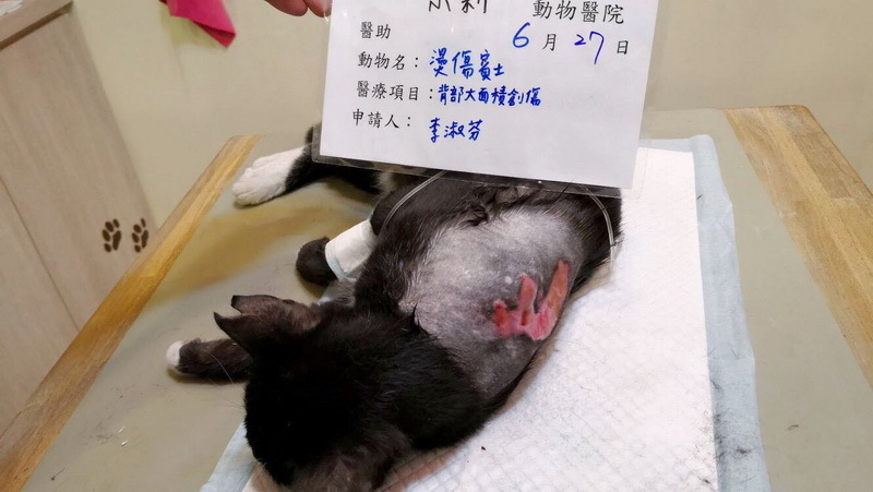 主題: 疑似燙傷或刺激性液體灼傷的momo3.0 申請者姓名: 李淑芬 花色: 申請日期: 2018-07-29 22:18:58 申請者部落格: 申請者臉書網址: monkey8817@yahoo.com.tw 所在縣市/合作醫院: 高雄市/小新動物醫院 治療費用: 9600元 需求人數: 21人 已結案 (2024-06-01 13:09:47) 報名人員: 珊珊(已付款)、Shin Liao、Shin Liao x4(已付款)、lin789(已付款)、Fox Yo(已付款)、陳湘澐 x2(已付款)、簡佑銘(已付款)、Duffy(已付款)、Julia Pan x3(已付款)、yys(已付款)、chiawei(已付款)、hank(已付款)、李永發 x4(已付款)、 候補人員: 動物病情說明: momo3.0的原生地一直都很友善,那天也會幫忙照顧的大姊特地打電話給我說momo3.0背上出現一個約50元硬幣的傷口,提醒我帶藥去投藥治療看看,餵了4天的消炎藥都不見好轉,正想說開抓帶去醫院治療吧!沒想到他就不見了,這一個不見就是10天,接著高雄下起連續一個星期的大雨,真的是急死了,超怕他傷口感染而導致蜂窩性組織炎,雨停後的第二天momo3.0出現了,背上的傷口居然擴大到快跟我手掌一樣大了,傻眼!二話不說,烙雞絲頭抓去醫院。 動物近況說明: 放回原地的3.0似乎很不爽我,放飯時間都不見他