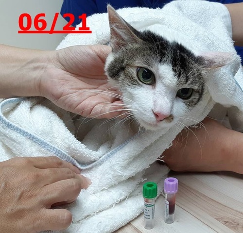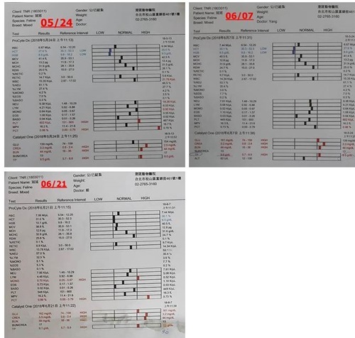 口腔檢查復原情況良好,血檢方面,HCT有些低(27.6%),因冠冠有慢性腎衰,腎貓的造血功能較低,但通常是低於20才會施打造血針,所以等下次回診檢驗看指數變化再決定是否須要打造血針。