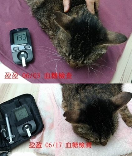 本次血檢只驗血糖,超標但還不需要擔心,體重少100克還是需要繼續控制。口炎的狀況持平,口腔沒有上次回診那麼紅。