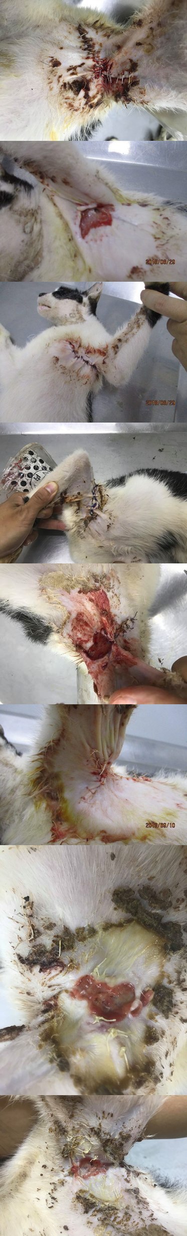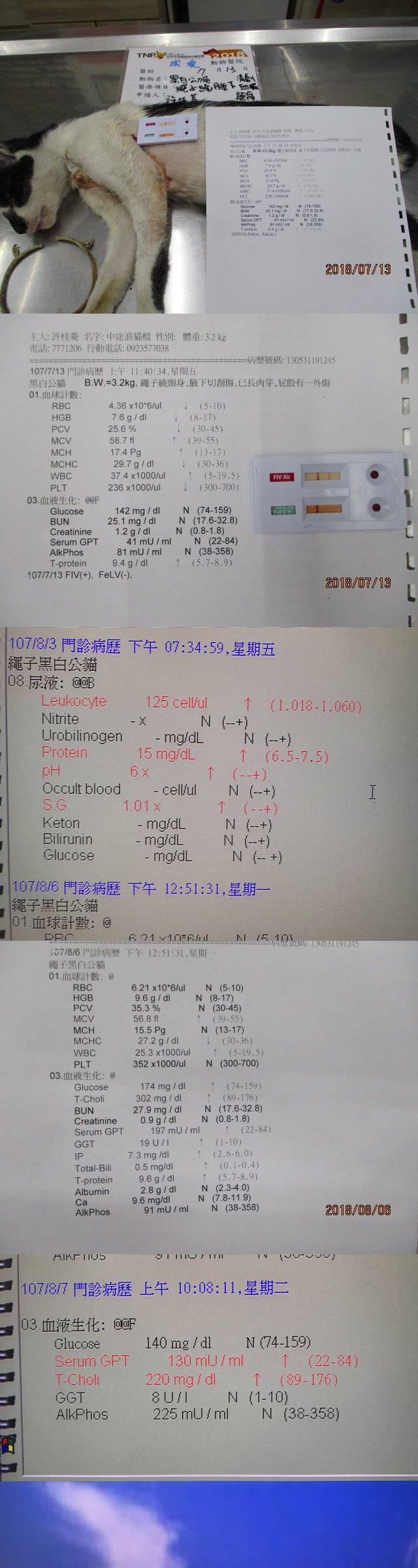 2018/7/13先做清創及血檢報告,傷貓二合一快篩為愛滋陽性,7月份先施以清創+外敷控制傷口,7月底傷貓有上呼吸道問題,食慾不佳!