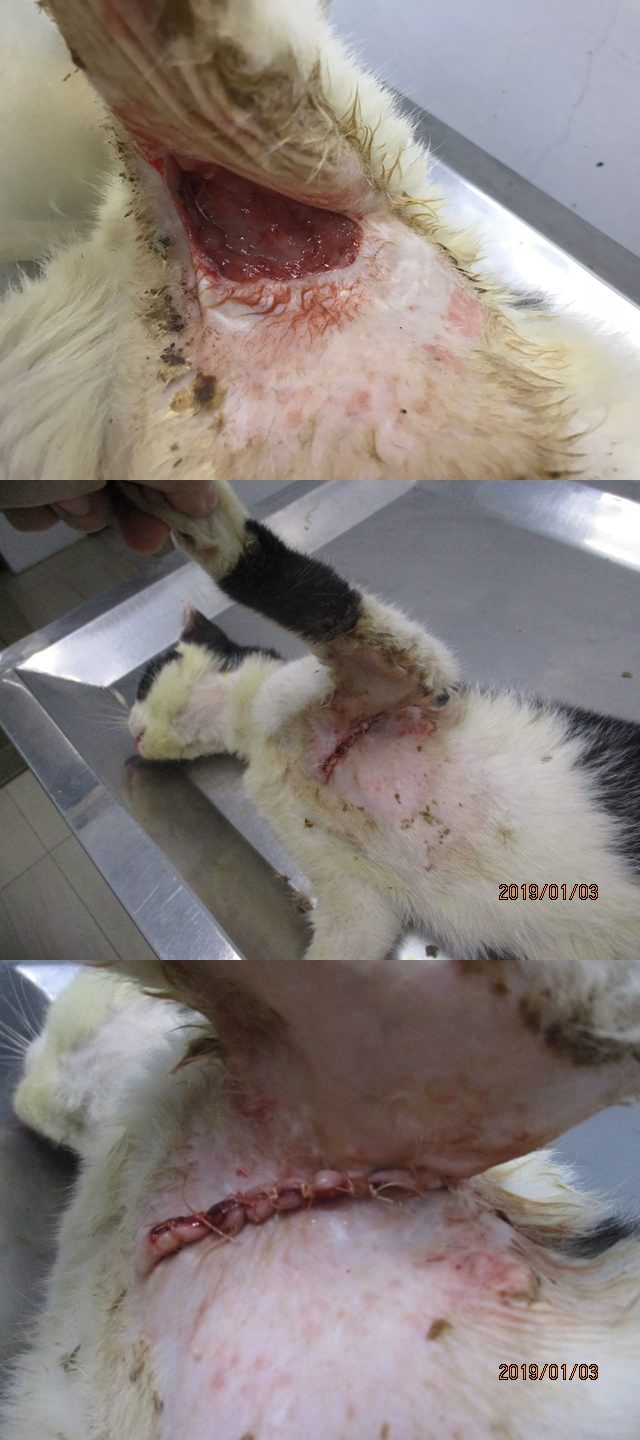 實際申請醫療費用為24,000元動物近況說明: 因傷口感染一直無法有效控制,且傷口縫合效果不佳,於2019/1/10轉院至台北沐恩動物醫院繼續治療!