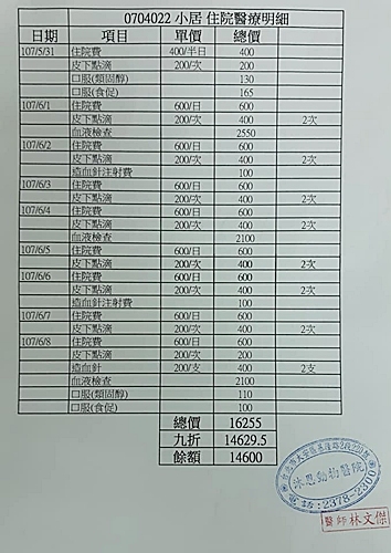 (d) 造血針:每四天一次早上,一次四格,已放二管在冰箱,施打日期為6/10,6/14。