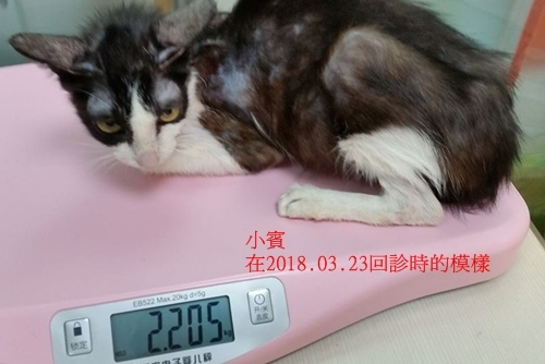 動物近況說明: 在協會照護員細心的呵護下及配合醫生的醫療指示,小賓的健康狀況逐漸有進步,除了體重有上升,毛也變得茂密有光澤,小賓是很惹人憐愛的孩子,希望他的健康狀況每日都能有進步。