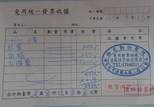 收據:3933元