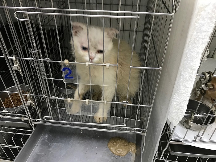 發現隻蜷縮在廢棄垃圾堆中的白色折耳波斯,