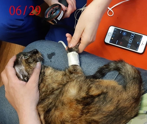 動物近況說明: 配合醫師的治療用藥及醫囑食物,喜娘目前的精神食慾等狀況已較穩定些,但因此疾病會使她狀況起伏不定,仍須要定期回診追蹤以掌握病情變化,每日須服用藥物與皮下注射,現在喜娘是以較高劑量的類固醇做治療,希望她的狀況能越來越穩定,減少藥物的用量。