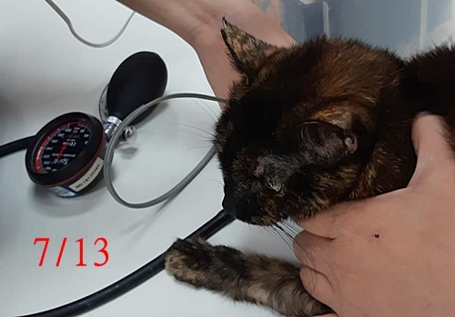 量血壓結果,心跳血壓都偏高,醫師認為在醫院的環境有可能因貓咪緊張使得測量結果不夠準確。