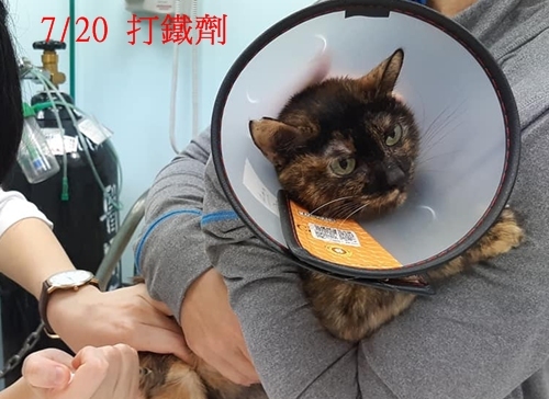 紅血球總數與之前差不多,但血容比指數掉了,問題是在於紅血球的體積,貧血的貓咪本來紅血球體積就較小,但喜娘的又更小,這使她造血的原料不夠,即是缺鐵,因此今日在醫院先施打一針鐵劑幫喜娘補充鐵,鐵劑是一週打一次,下次回診看指數有否需要再打。