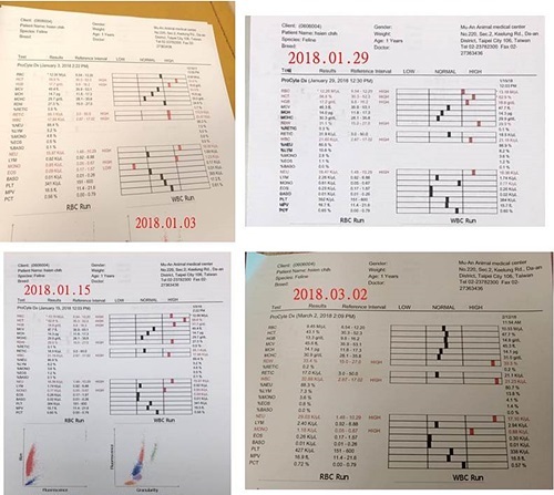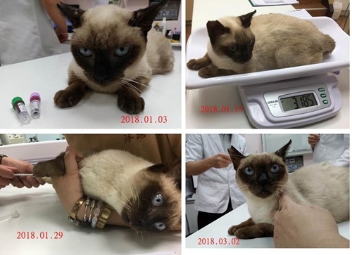 抽血結果顯示,暹知的腎、磷、紅白血球指數都有上升一點,造血針改成兩週打一次、福斯利諾降磷藥一樣是一次6顆;每日皮下點滴施打前一樣藥空腹秤體重並記錄在紀錄表上給醫師看