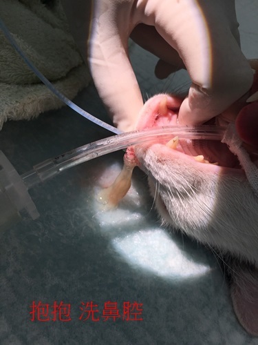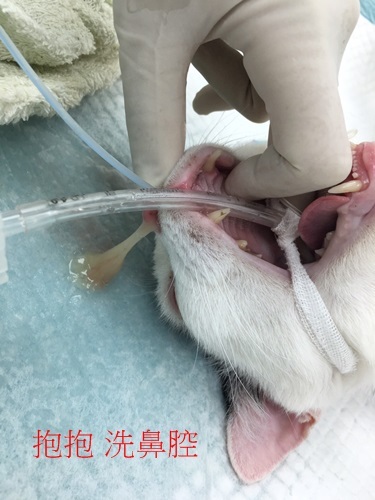 協會照護員悉心照顧及定期回診服藥,抱抱的健康也逐漸穩定,只是因先前病得太厲害有時仍會淚眼鼻涕,平時服藥點眼藥水控制,今年7月時因鼻涕變多又濃,醫師診斷後認為須要清洗鼻腔將較濃的鼻涕沖出,於是7/16安排抱抱接受清洗鼻腔,希望大家幫忙抱抱的治療費用。